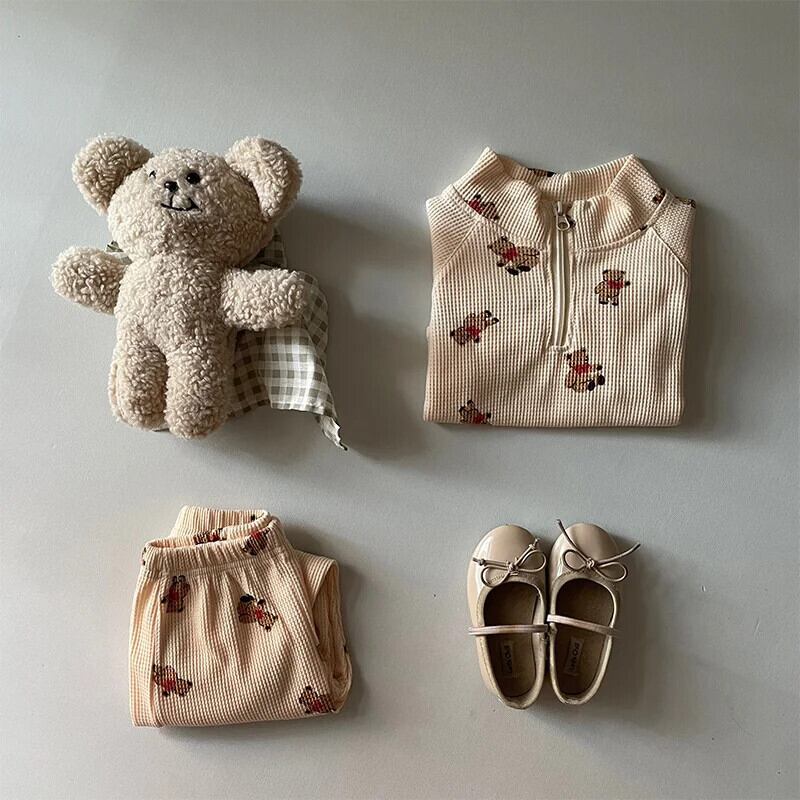 ベビーセット秋暖かい女赤ちゃんセット衣装クマかわいい男子スウェットパンツ 2 個スーツ誕生 シャツ 大人ガーリー スウィート キュート カジュアル オータム 秋物