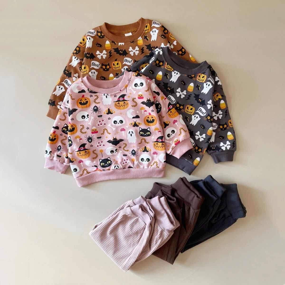 幼児男子セットゴーストプリント長袖トップストレーナーコーデュロイパンツ幼児子供セット ロング