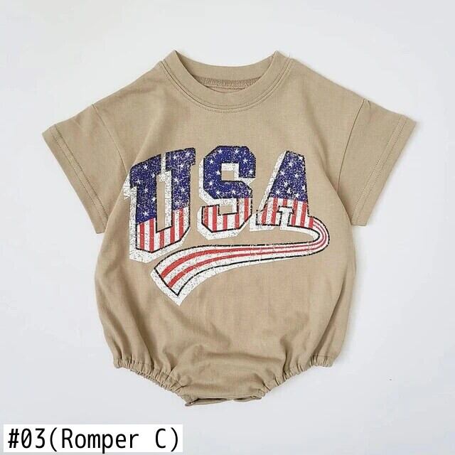赤ちゃん男子 USA パッチ Tシャツロンパース生まれベベ半袖ルーズスウェットシャツカバーオール幼児女子ロンパース 0-24M ジャンプスーツ ショート ハーフスリーブ