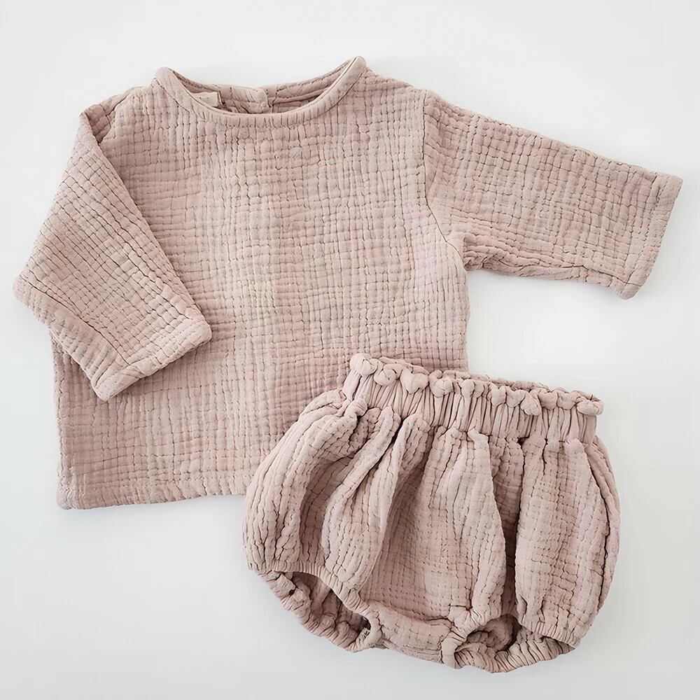 女赤ちゃんガーゼ綿長袖トップカーディガンシャツ+ブルマショーツセット幼児春生まれ男子セット ロング コットン スプリング 春物 ブルマー