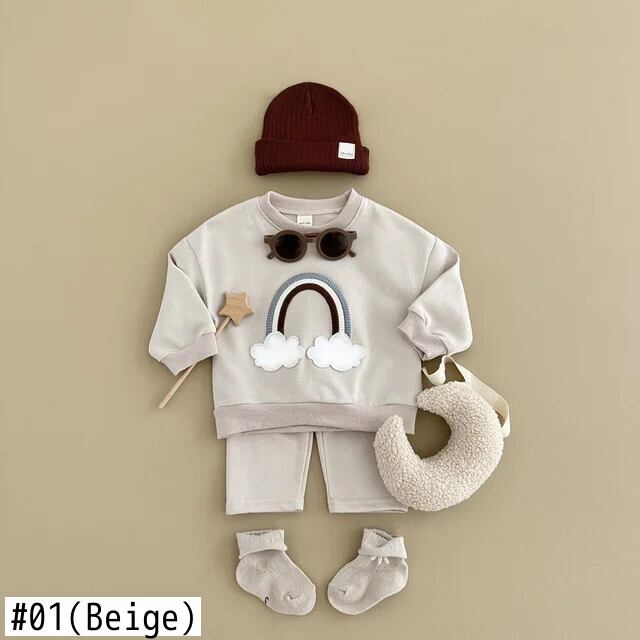 0-4Y 赤ちゃん男子女子セット生まれ幼児秋春手作りレインボー衣装トップスパンツ子供キッズ スプリング 春物 オータム 秋物