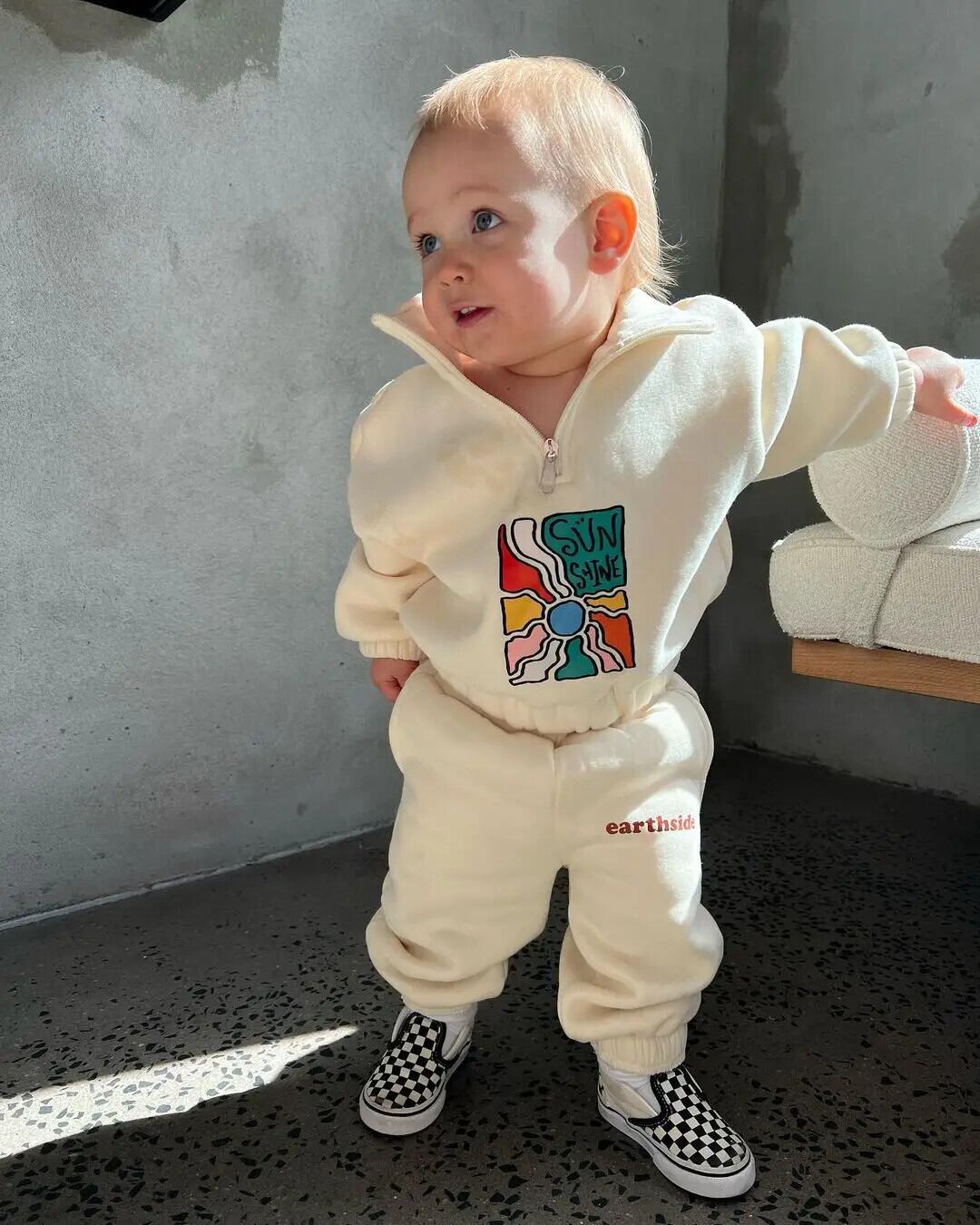 秋ベビーセット カラフルパターンプリント プルオーバー トップ + スポーツ パンツ ツーピース ガールズ セット ボーイズ ラウンドネック セット オータム 秋物 Oネック