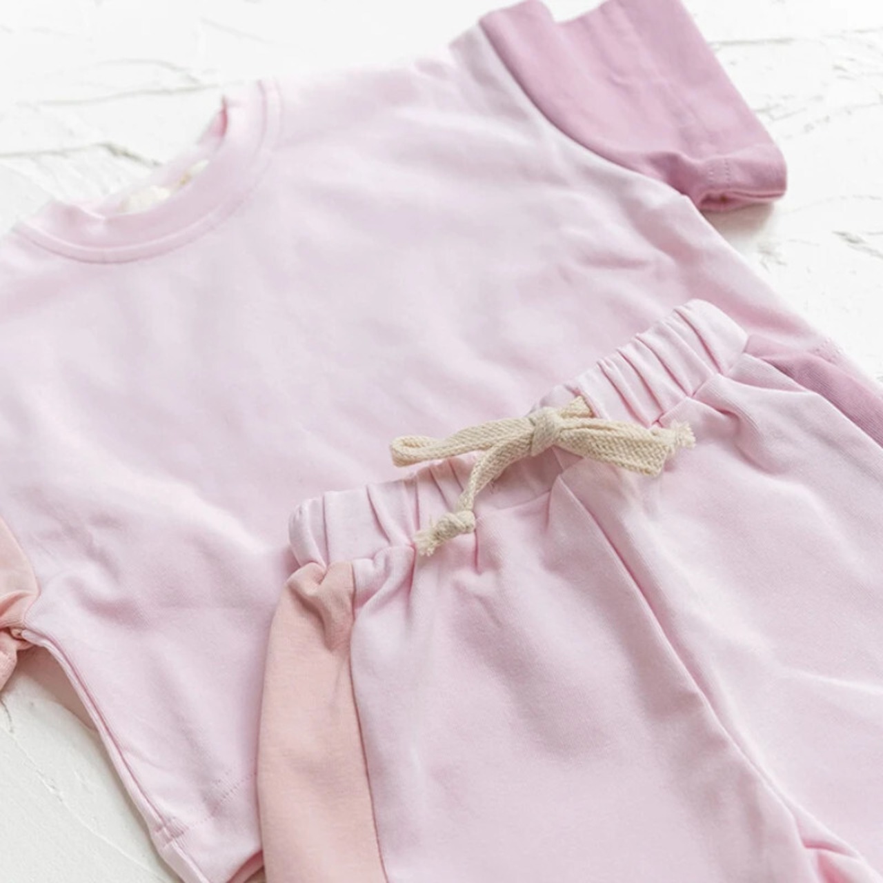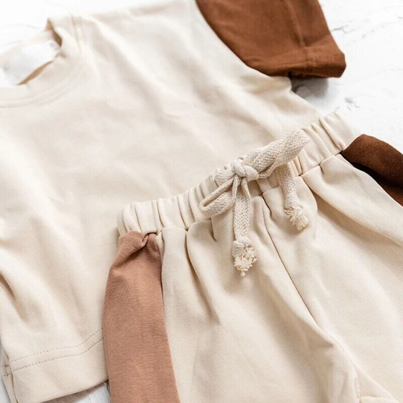 サマーTシャツ 男子女子 半袖ショーツ 誕生コントラストカラー 2点セット ベビーセット ショート ハーフスリーブ 夏物 ブルマー