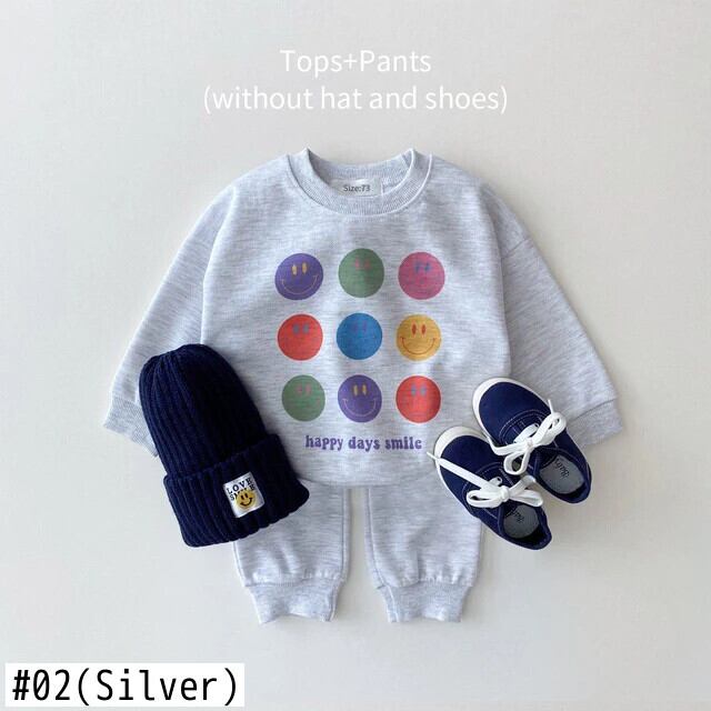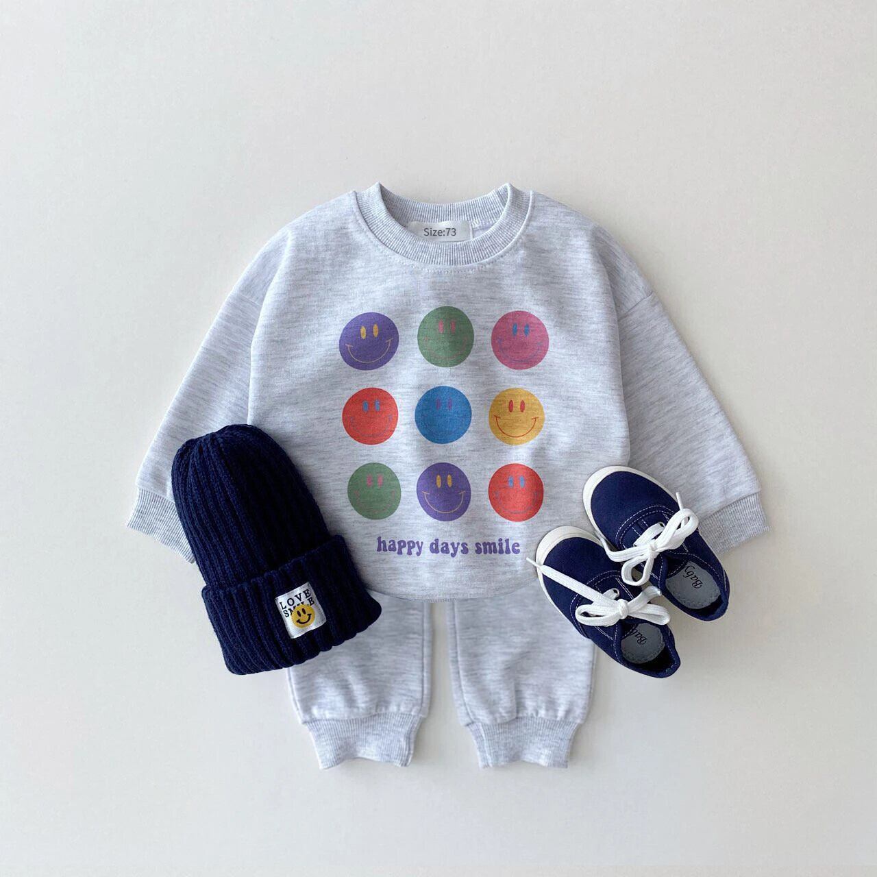秋キッズセット女赤ちゃん漫画スマイルフェイストレーナートップス + ジョガーパンツセット男子スーツ衣装 オータム 秋物 ソリッドカラー