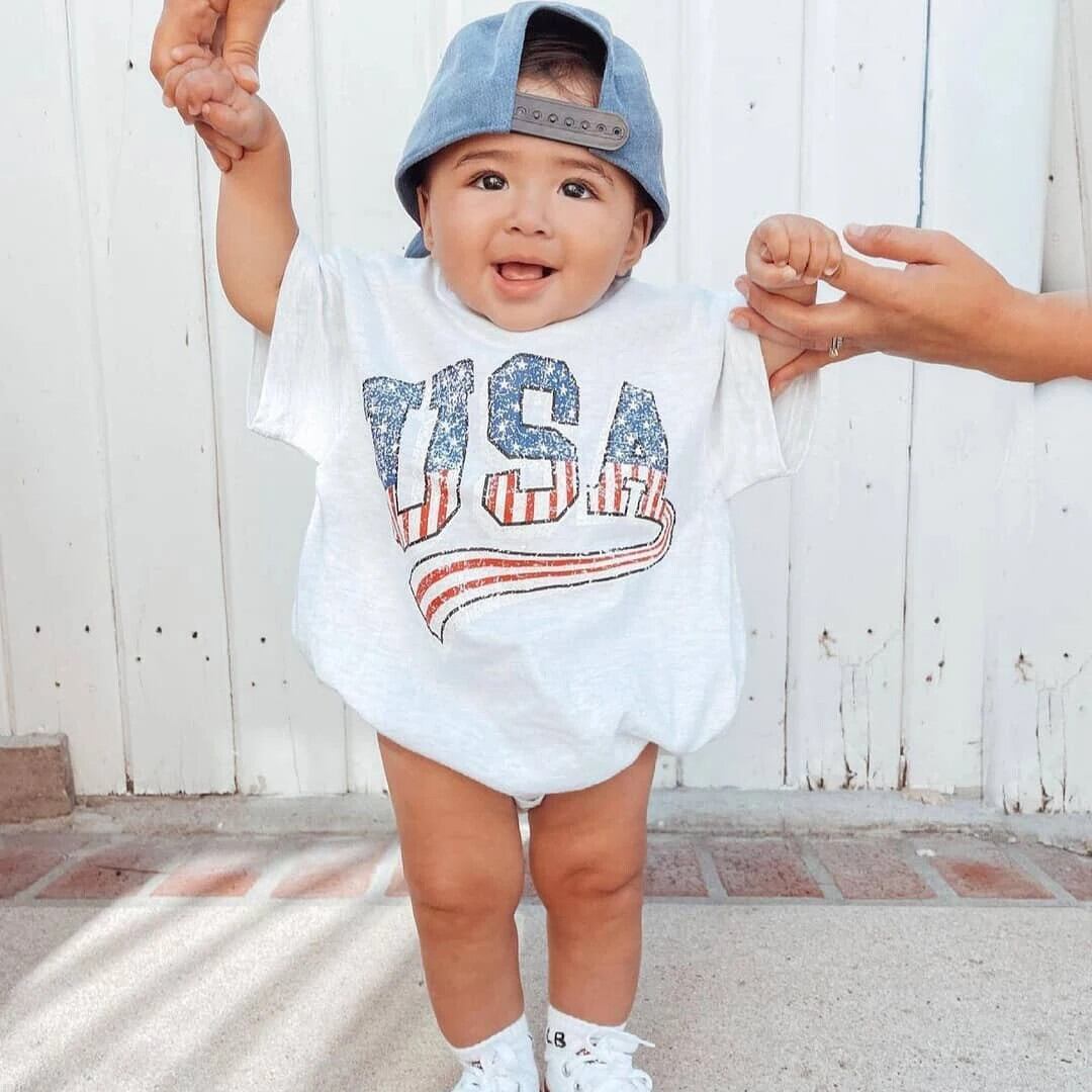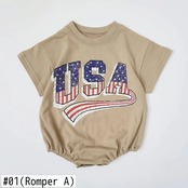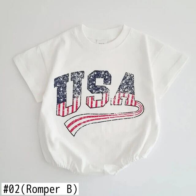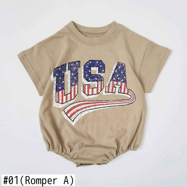 ベビークリーパー 男子 女子 夏生まれ 半袖 アメリカンプリント ロンパース 子供用 ワンピース コットン トライアングルクリーパー ショート ハーフスリーブ サマー 夏物