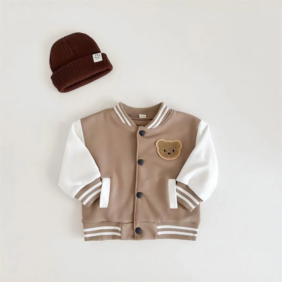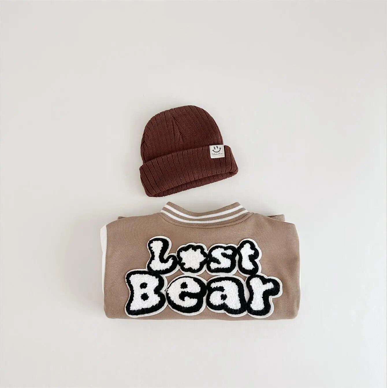 幼児ベビーレターリトルベア厚みある生地長袖カーディガンボタンジャケットパネルコントラスト秋と冬 ロング オータム 秋物 ウィンター 冬物
