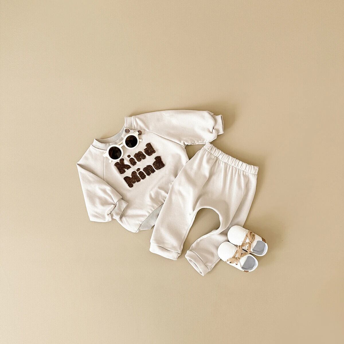 2024 ベビーセットボーイズレター刺繍ガールズキッズネックボタン衣装パーカー長袖トップ + パンツ春秋 2 個 ロング スプリング 春物 オータム 秋物