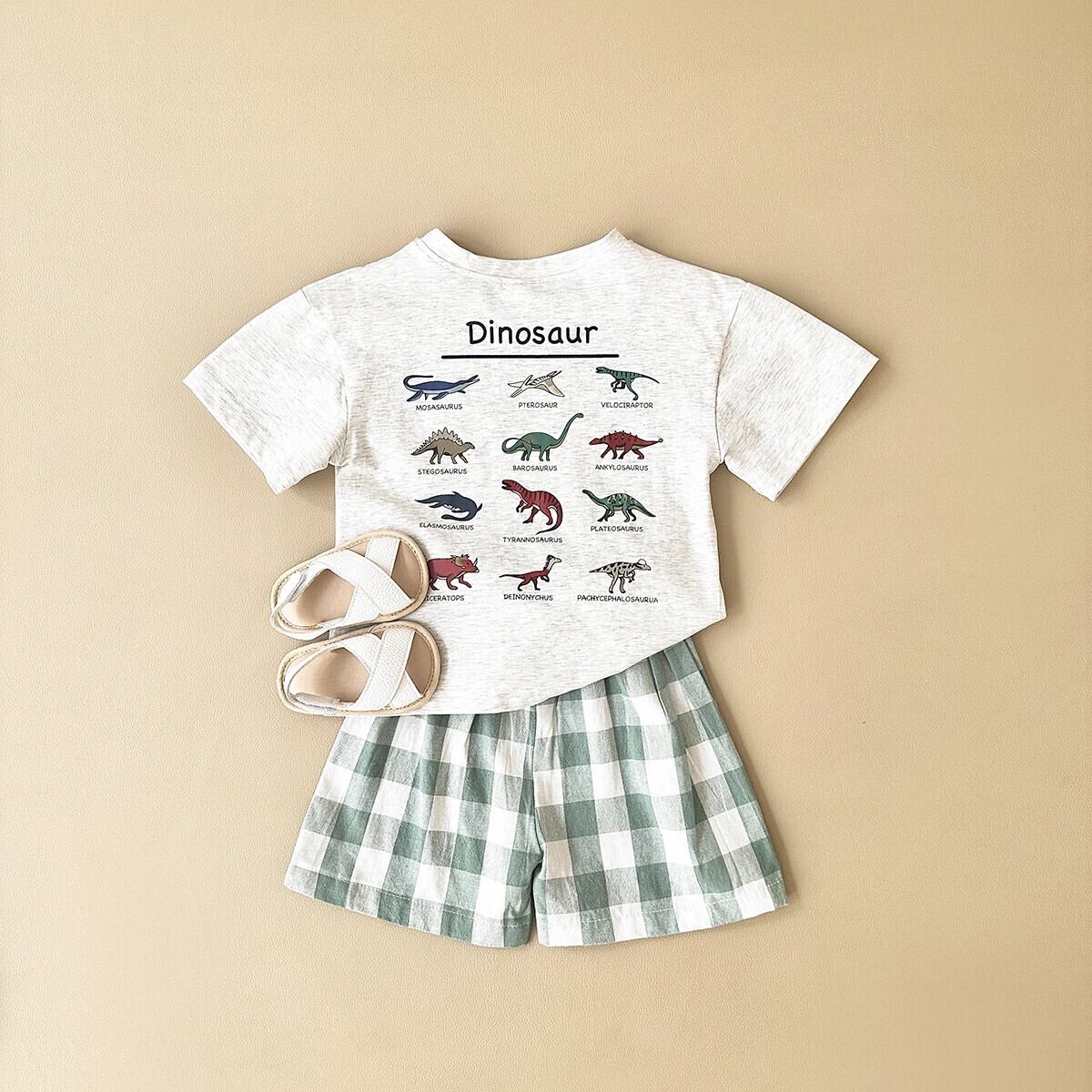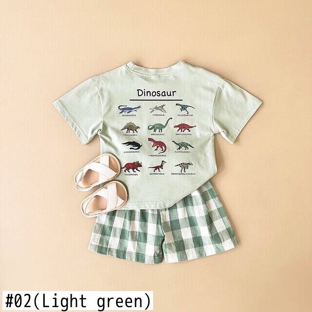 2 個夏赤ちゃん男子セット女子スーツ恐竜プリント Tシャツ + チェックパンツ幼児幼児衣装セット 1-3Y レッド サマー 夏物 ショーツ ブルマー