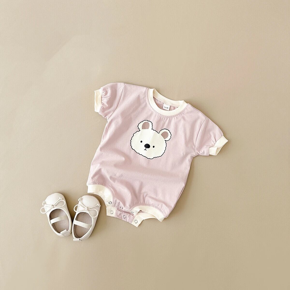 夏生まれ男子ボディスーツ女子綿かわいいソフト漫画クマプリントポッパーロンパース幼児 0-2Y コットン 大人ガーリー スウィート キュート カジュアル サマー 夏物