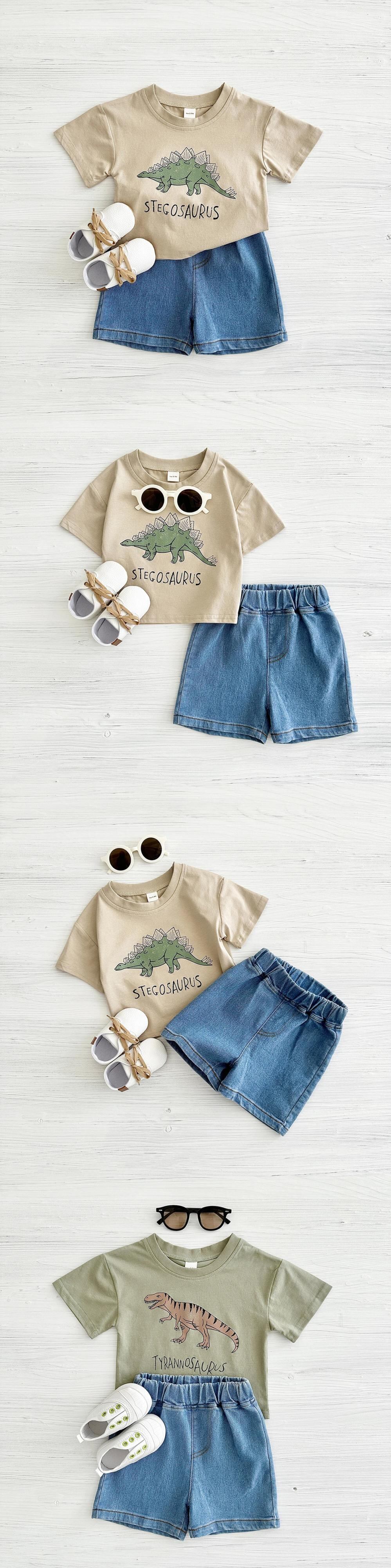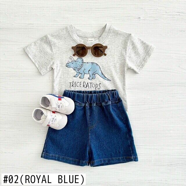 2024 生まれ男子夏セット漫画恐竜プリント綿半袖デニムショーツ女子 0-3 年 ショート コットン ハーフスリーブ サマー 夏物 ブルマー