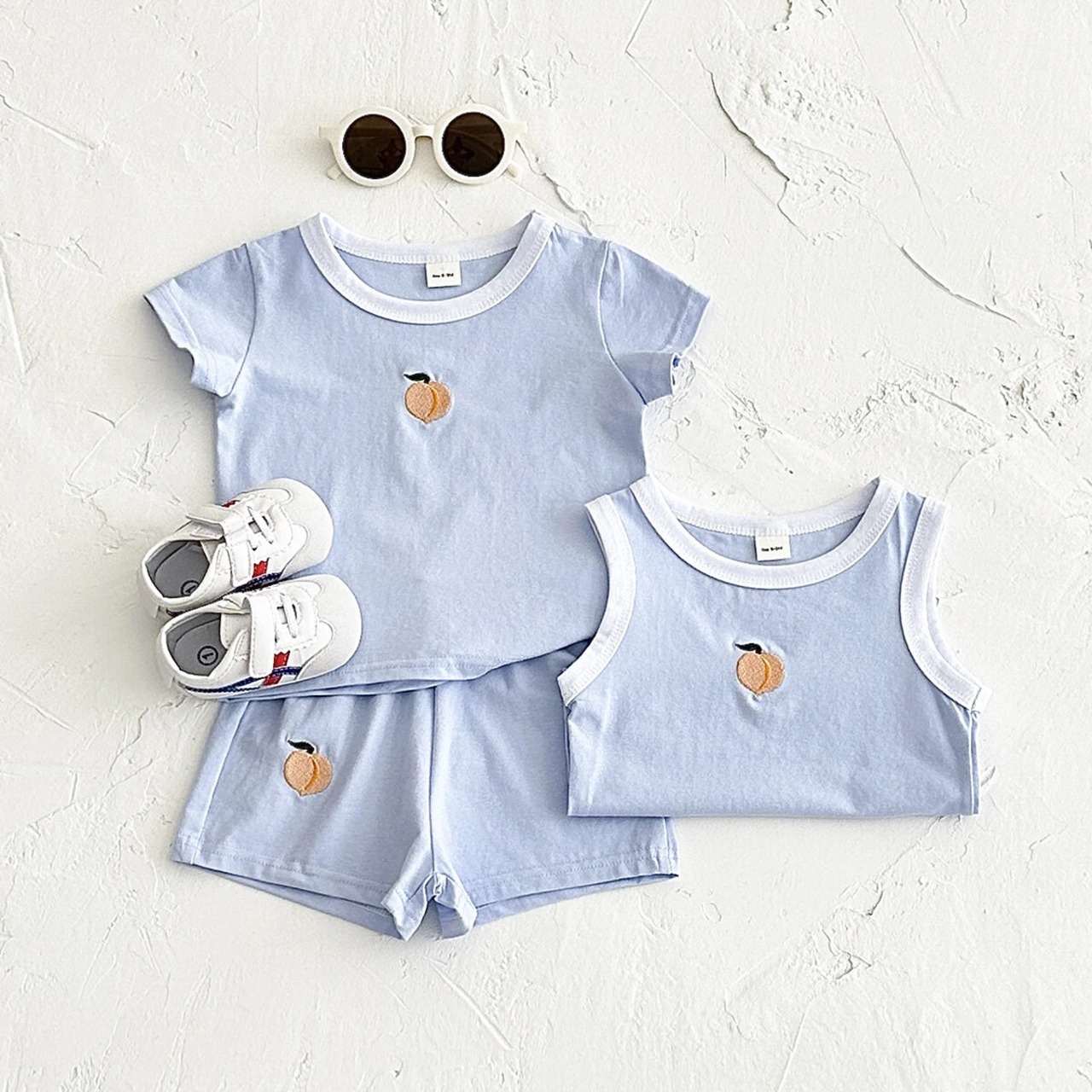 2024 幼児キッズベビーショーツセットフルーツプリントコットンベスト半袖 Tシャツ + ショーツ 3 個男子女子 1-3Y ショート ハーフスリーブ ブルマー