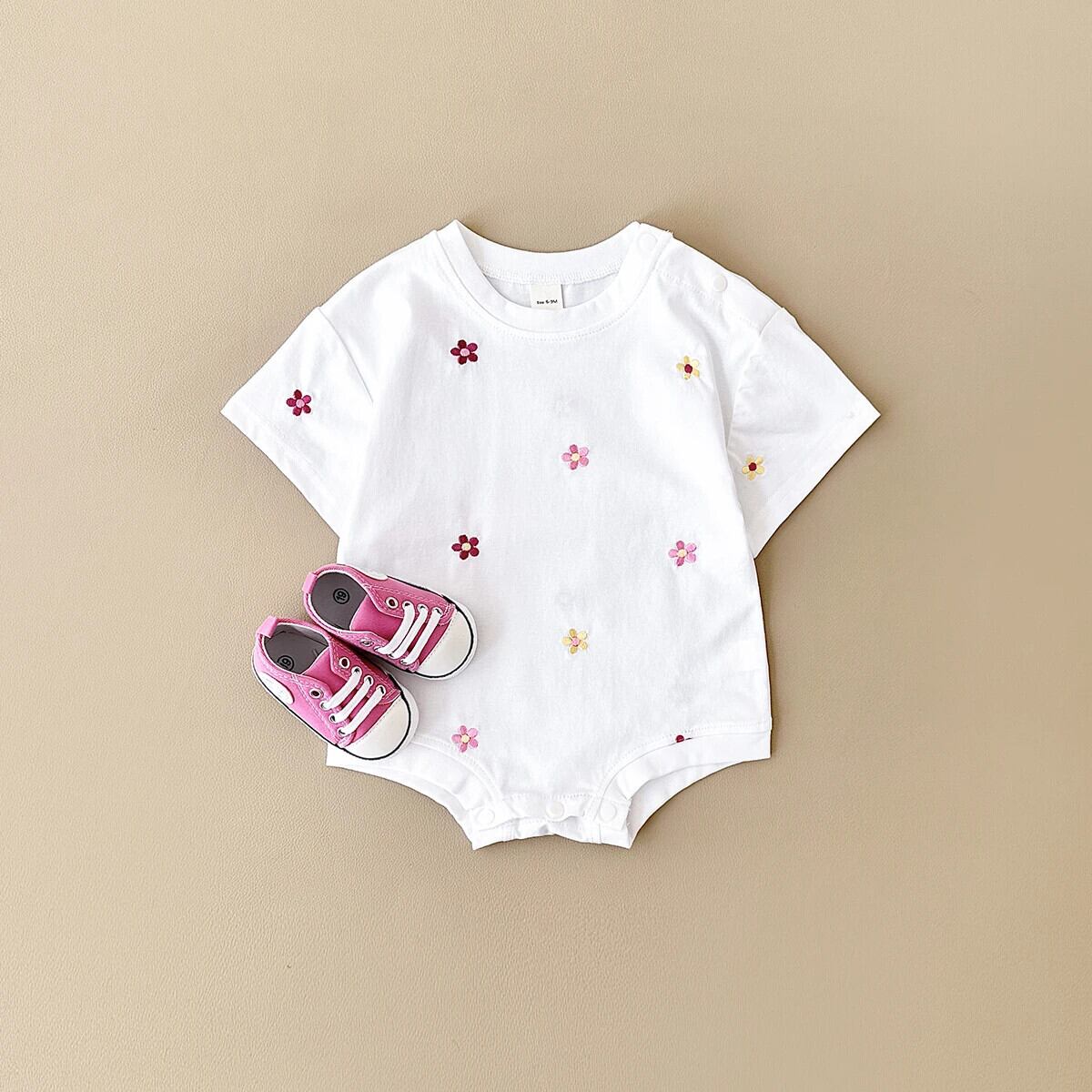 夏生まれベビーロンパース花柄ラウンドネック半袖ジャンプスーツ綿幼児ボディスーツ女児 0-18M ショート コットン ハーフスリーブ サマー 夏物 Oネック
