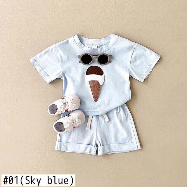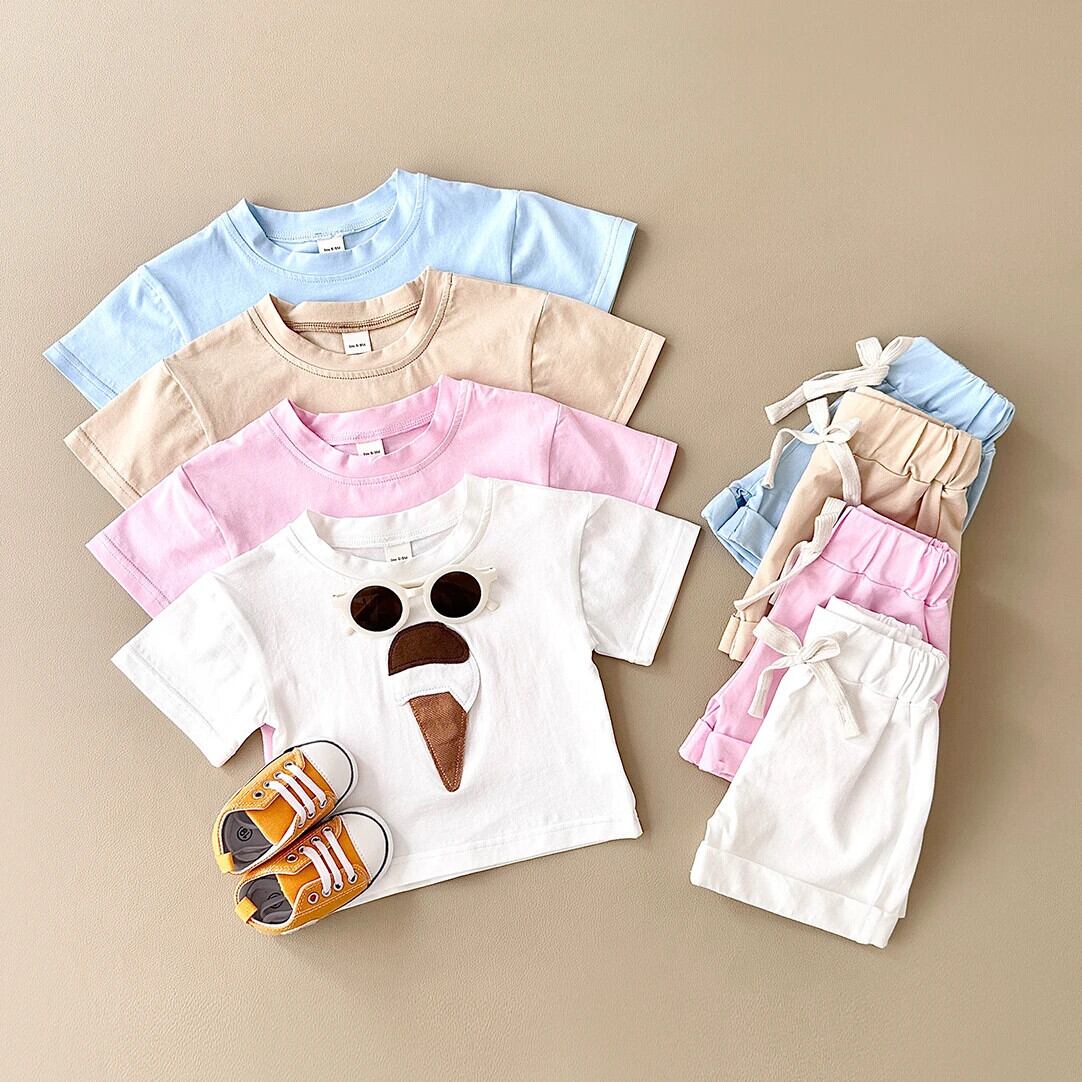 2024 年生まれ 2 個夏ベビーセットアイスクリームプリント Tシャツ + スポーツショーツ男子女子幼児衣装セット 1-3Y サマー 夏物 ブルマー