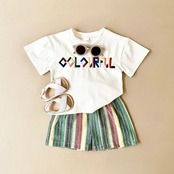 夏ベビーセット生まれ男子レターパフ半袖コットン Tシャツ + カラーバーショーツ子供スーツ サマー 夏物 ブルマー