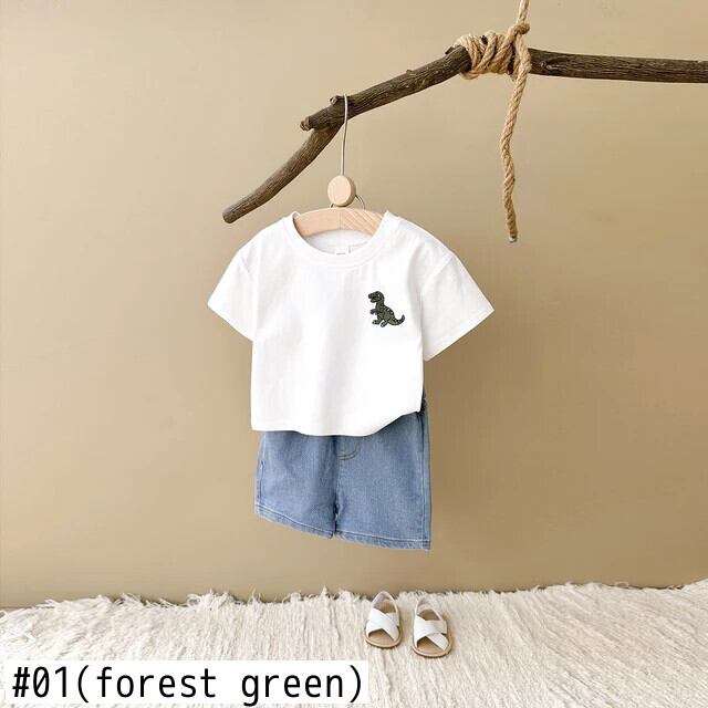 夏ベビーセット男子幼児スーツ恐竜刺繍 Tシャツデニム幼児 2 個子供 0-3Y サマー 夏物 キッズ