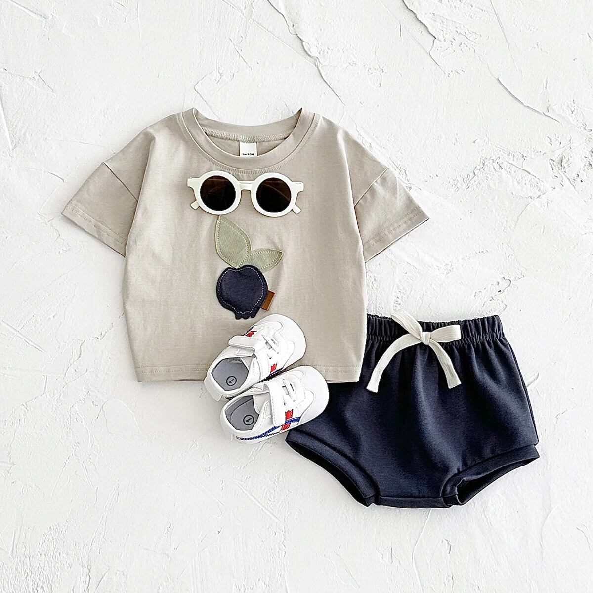 2024 夏ベビースーツ 2 個ベビー幼児女子男子セットレモンフルーツプリントラウンドネック Tシャツ + 三角ショーツ サマー 夏物 ブルマー Oネック