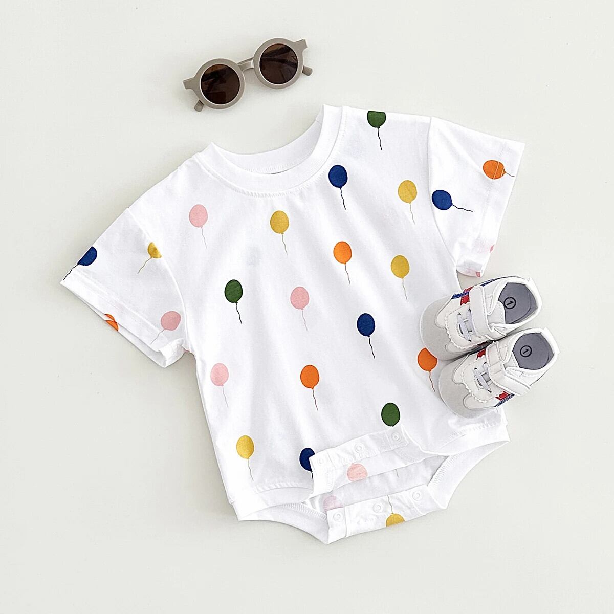 夏生まれベビーロンパースバルーンプリント半袖ジャンプスーツ綿幼児ボディスーツ男子女子子供 0-18M ショート コットン ハーフスリーブ サマー 夏物