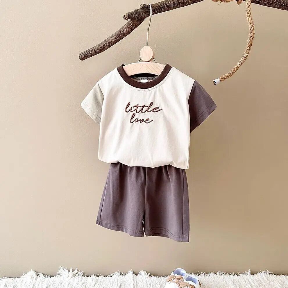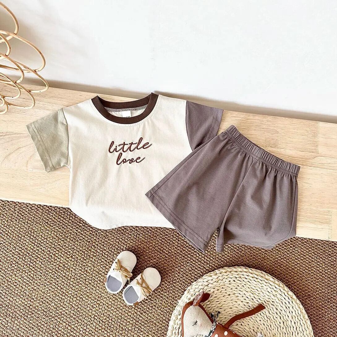 生まれた赤ちゃん男子 2 個夏半袖セット文字刺繍 Tシャツ + ショーツ女子 0-4Y 子供 ショート ハーフスリーブ サマー 夏物 ブルマー