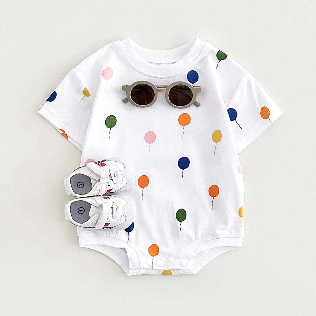 2024 生まれ男赤ちゃんボディスーツ幼児夏女赤ちゃんロンパースバルーンプリント半袖ジャンプスーツ綿子 0-18M ショート コットン ハーフスリーブ サマー 夏物