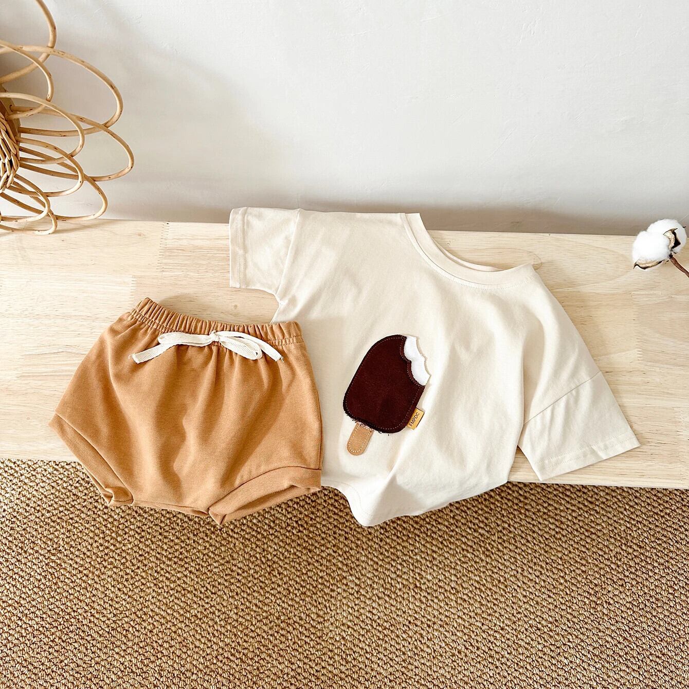 イン幼児衣装生まれベビー男子 2 個ガールズボーイズ子供セットアイスクリームパッチ Tシャツ + トライアングルショーツ 0-3Y ブルマー