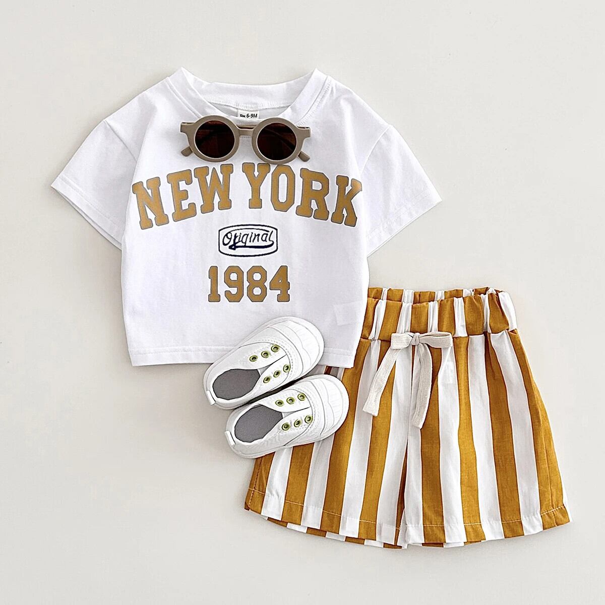 幼児スーツヨークプリント Tシャツ + バーショーツ誕生赤ちゃん男子 2 個夏ベビー幼児セット 0-3Y サマー 夏物 ブルマー