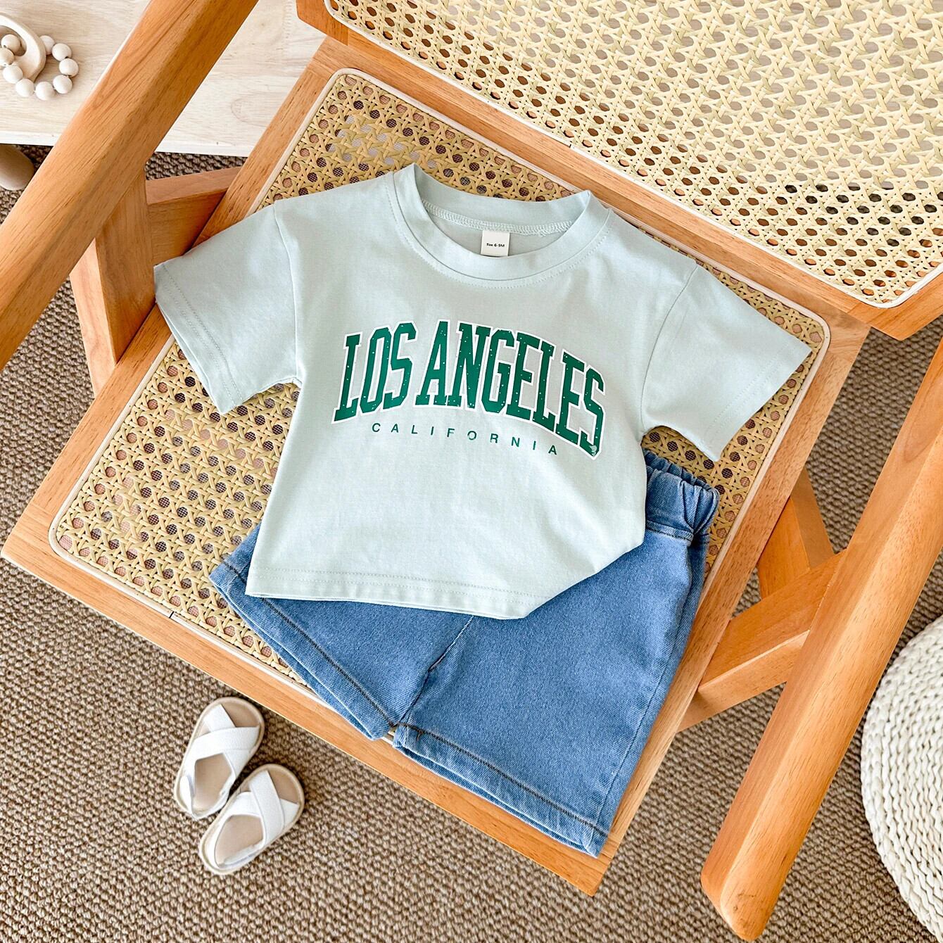 2024 年生まれベビーセット男子女子幼児衣装 0-3Y レタープリント Tシャツ + デニムショーツ夏子供 2 個 サマー 夏物 ブルマー