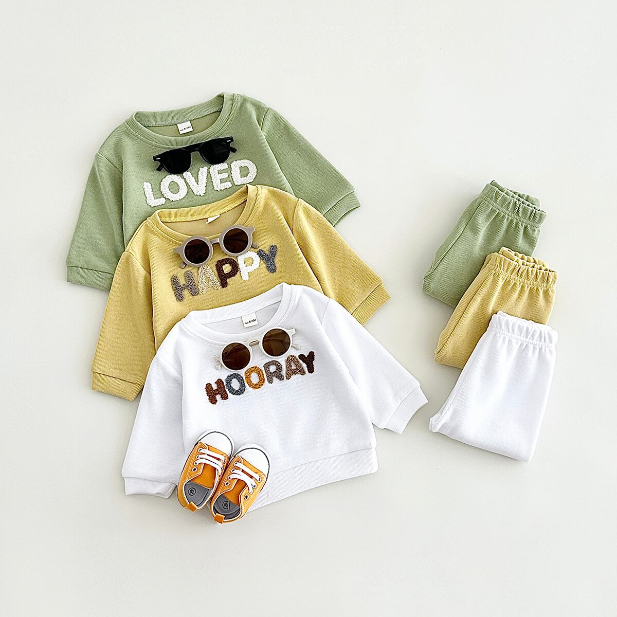 ベビー春秋生まれベビー綿男子女子ルーズプルオーバーぬいぐるみレター長袖トップ + パンツ幼児 ロング コットン スプリング 春物 オータム 秋物
