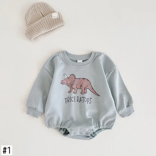 Baby Strample Frühling Herbst スウェットシャツ オーバーオール Dinosaurier Druck Jungen Mädchen warmes Dreieck ボディスーツ Neugeborene Baby kleidung 0-18m