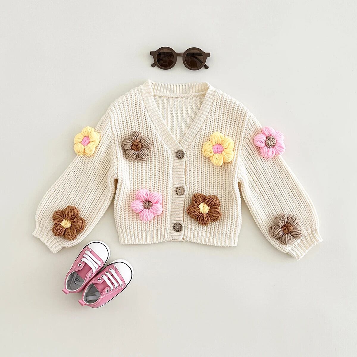 0-3y Nieuwe Meisjes Baby Truien Handgemaakte Trui Vest 3d Bloem Baby Top Losse Jas Kataen Herfst Winter Pasgeboren Baby Kleding ウィンター 冬物